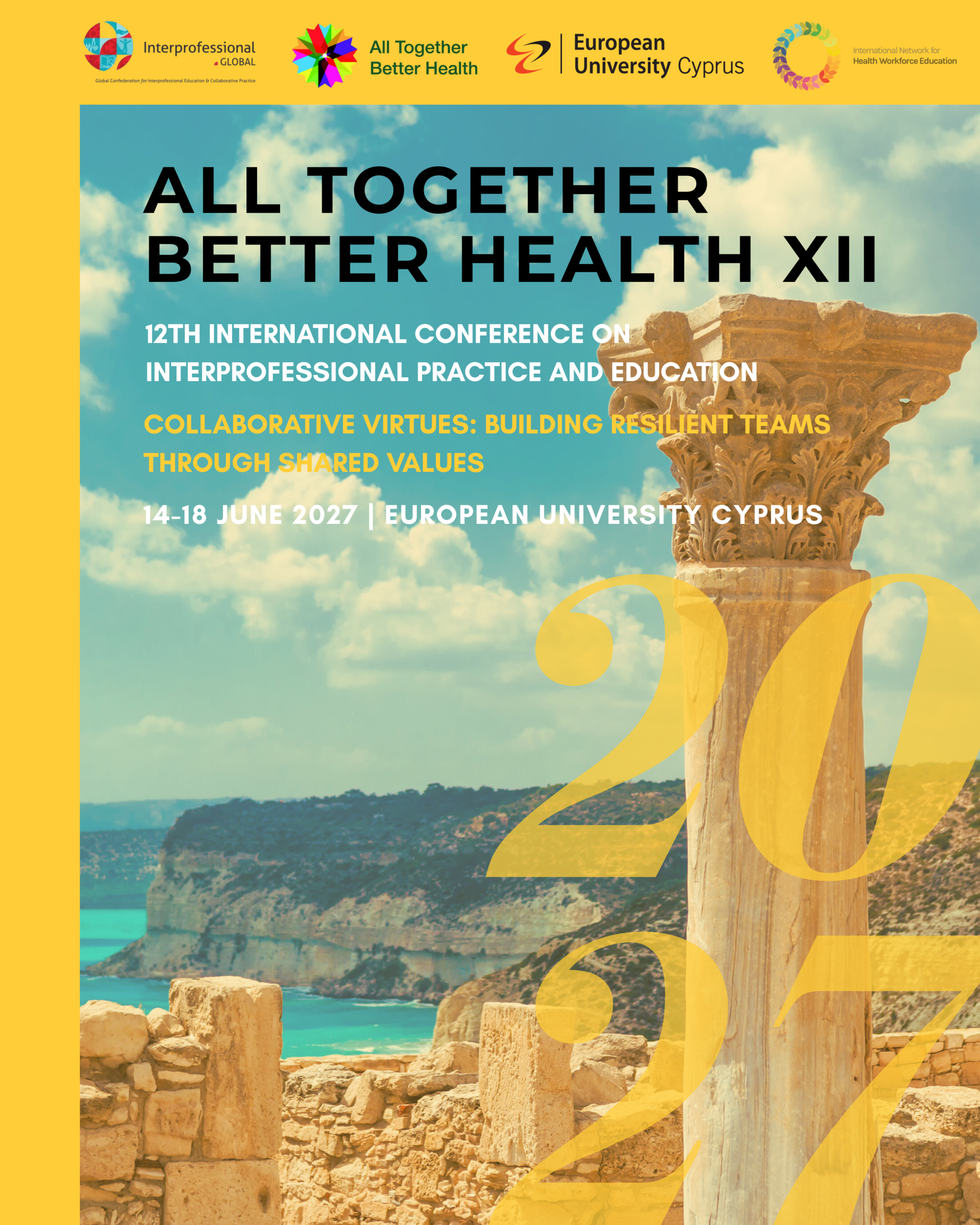 Interprofessional.Global, the World Confederation for Interprofessional Practice and Education, has confirmed that Cyprus will host the 12th edition of the International Conference on Interprofessional Education and Collaborative Practice – All Together Better Health (ATBH XII) on June 14-18, 2027. The conference will be co-hosted by the International Network for Health Workforce Education (INHWE) and the European University Cyprus (EUC) and will take place in Nicosia.